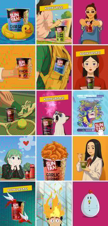 For SUN YAN – Lithuania’s most expressive instant noodle brand – we built a spicy, full-flavored content universe across Instagram and Facebook.