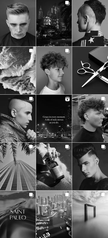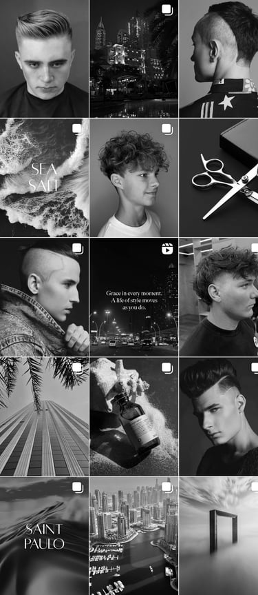 We crafted the entire visual and verbal identity for SAINT PAULO, a bold hair artistry brand with modern sophistication at its core.